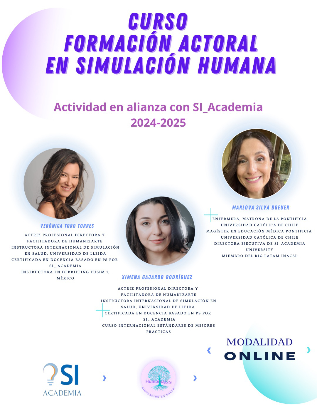 Nos unimos en alianza con SI_Academia, liderado por Marlova Silva y junto a ella hemos realizado 2 cursos de Formación Actoral en Simulación Humana, siendo todo un éxito, a nivel nacional, como internacional.